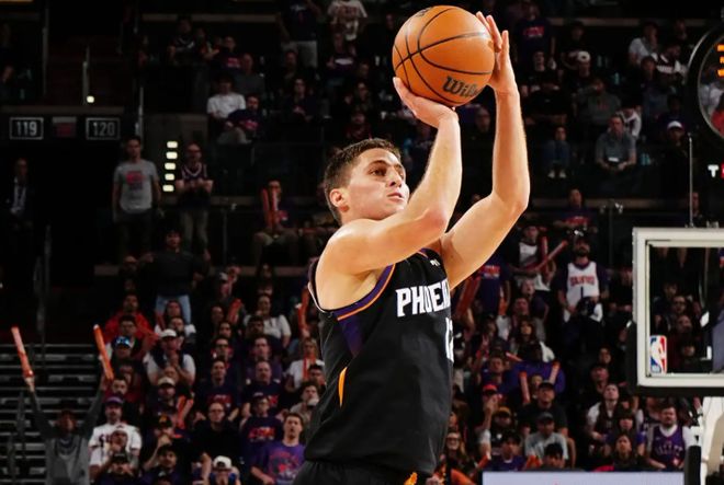 本场比赛中,太阳虽然比较顺利地战胜了对手,但是球队的替补控卫科林-吉莱斯皮(Collin Gillespie)的表现还是差了一点的。吉莱斯皮全场出场17分10秒,投篮2中1,三分线外1中0,得到了2分2篮板2助攻1抢断的数据,还有1次失误和1次犯规,正负值为-7。吉莱斯皮在进攻端没有什么球权,没有得到太多的分数,也没有展现出自己的传球能力和组织能力,在进攻端没有为球队提供基本的帮助和支持。不过另一方面,吉莱斯皮在防守端的表现也是惨不忍睹的水平,他的个人防守能力也是一塌糊涂的,被对手各种针对和打爆。吉莱斯皮在本场比赛中的整体表现实在是太糟糕了,也就是球队其他球员的表现足够出色,吉莱斯皮的糟糕表现也没有影响到球队的这场关键胜利。