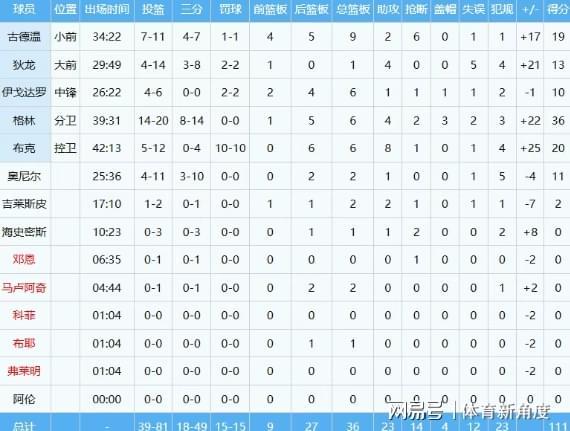 太阳队方面,杰伦格林此役表现堪称惊艳,他20次出手命中14球,狂轰36分6篮板4助攻2抢断3盖帽,数据栏几乎被填满。布克也保持稳定输出,他10罚全中,得到20分6篮板8助攻。值得一提的是,杰伦格林在面对开拓者时,三分7中2得到35分5篮板2助攻;而此役面对勇士,他三分14中8,再次砍下36分6篮板4助攻。美媒Inside the sun发文盛赞:“杰伦-格林无疑是太阳附加赛中表现最为出色的球员。”