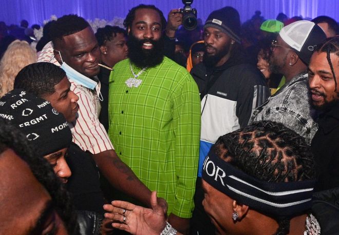 哈登频繁出入脱衣舞俱乐部,也是联盟和媒体常年热议的话题。休斯顿当地一家夜店甚至因为他常年高额消费,为他退役了专属球衣。