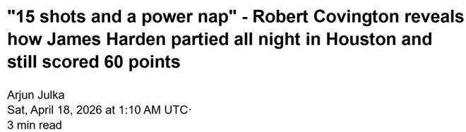 北京时间4月18日,前火箭球员罗伯特-考文顿,在最新的一期播客节目上谈到了前队友哈登的疯狂夜生活和训练。