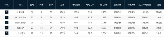 目前上海与广厦已经分别锁定常规赛第一与第二,其中上海是队史第二次锁定常规赛冠军。