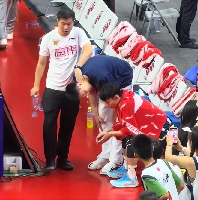 中场休息环节,还有球迷拍到了胡明轩在替补席上安慰徐杰的画面,半场广东领先福建10分,而徐杰却一直坐在场边不说话,低头不语,很难不让人怀疑,徐杰的身体或者精神上是出现了一些问题。