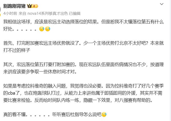 其实这场爆冷输球根本就没有那么多的弯弯绕,赛季最后一个主场,又是球迷答谢夜,球队管理层是有多想不开才会在主场放水输球,给球迷添堵?要是想放水,后面两个客场哪个不能放?更何况,广东队已经锁定了联赛前五,现在战绩最差就是第5,不管怎么着都会在季后赛遇到北京或者深圳(后续广东队就算全输,也能依靠潜力赛积分优势力压浙江坐稳第5)。