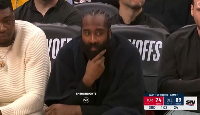 然而第三节比赛,局势彻底反转。骑士在第三节开局就打出10-0的进攻高潮,直接将分差扩大到两位数;整个第三节,骑士单节轰下36分,米切尔与哈登合计砍下26分。