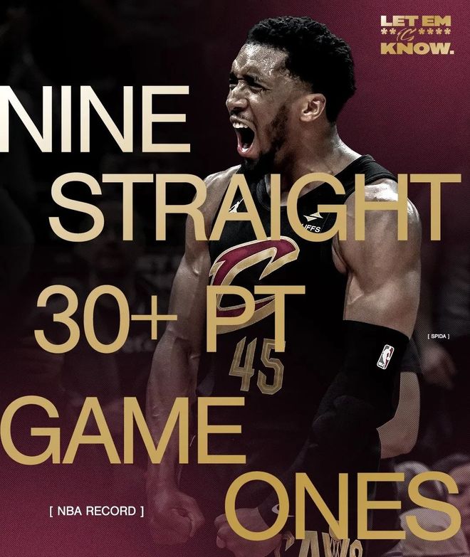 米切尔则延续巨星成色,20投11中狂揽32分、3篮板、4助攻,刷新NBA历史纪录——成为首位连续9个季后赛系列赛揭幕战均砍下30+的球员。