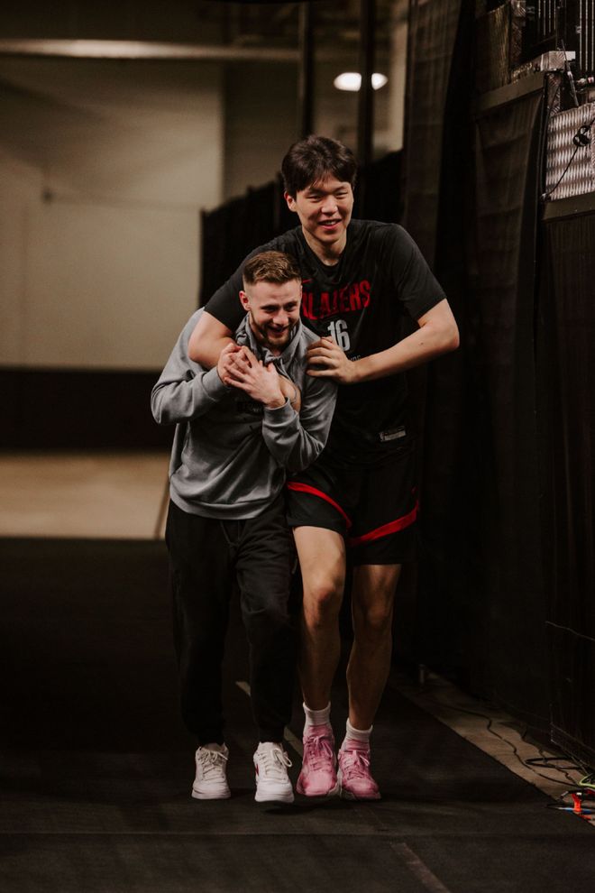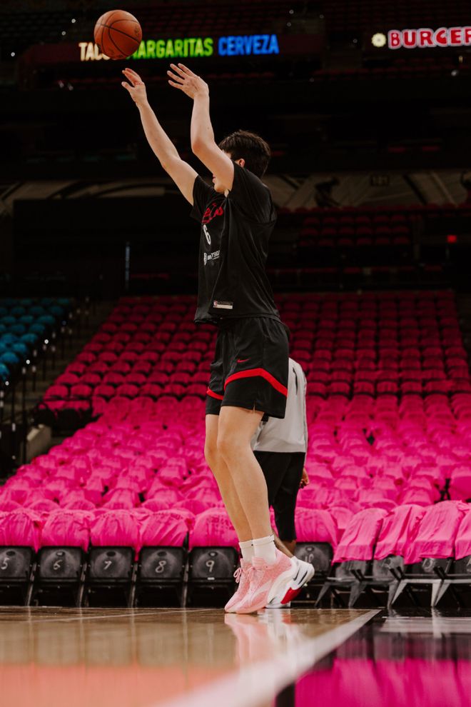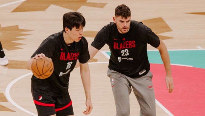 北京时间4月20日,NBA季后赛继续进行,开拓者将在客场挑战马刺。赛前的投篮训练上,杨瀚森与队友克林根进行对位训练,还练习了三分投射。开拓者官方社媒晒出了杨瀚森的多张照片——