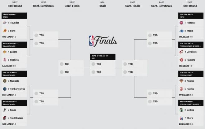 显而易见,首轮G1除了魔术对活塞完成了以下克上,其余对决全部是排名更靠上的球队获得比赛胜利,并且最小分差都在9分以上。