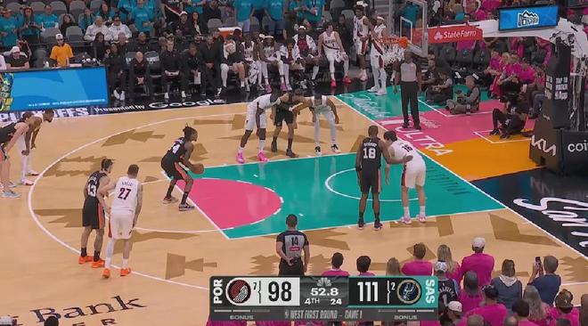 西部第二的马刺,同样是在主场兵不血刃111-98击败西部第七的开拓者。