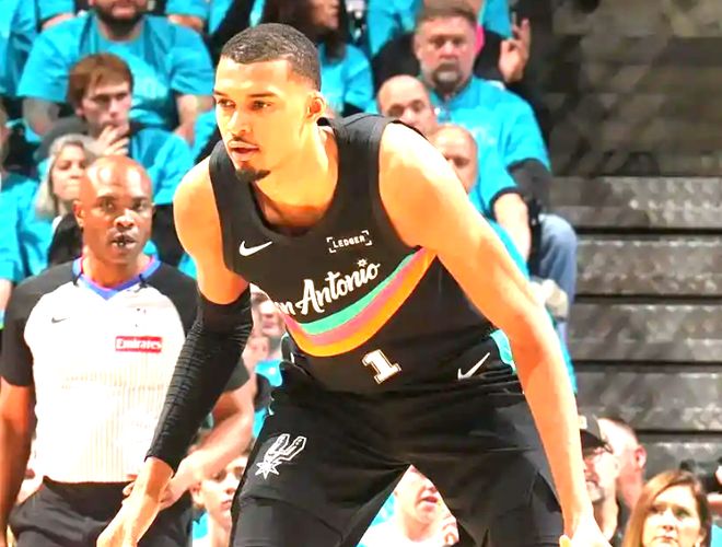 第四节比赛,由于分差过大,渐渐失去悬念。文班亚马联合哈珀持续发力,将领先优势扩大至20分以上。手感火热的文班亚马开始展现个人天赋,先是转身1打2勾手命中,随后又迎着克林根的防守扔进三分,下一个回合更是顶着克林根强行出手打板得分,动作间尽显邓肯式的沉稳与精准。尽管开拓者没有放弃,一路追分将分差缩小至12分,但文班亚马随即命中三分稳住局势;阿夫迪亚不甘落后,完成一记精彩飞扣,文班亚马则顺下吃饼得分回应,随后阿夫迪亚联合亨德森继续发力,再度缩小分差,但是无奈分差太大,时间也不够。比赛最后1分钟开拓者投子认负,杨瀚森替补登场,但是未能拿分。最终,马刺以111-98轻松击败开拓者,拿下系列赛首战胜利。