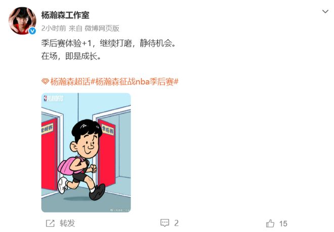 就此,杨瀚森成为继王治郅、姚明、易建联和周琦之后,第五位能在NBA季后赛登场亮相的中国球员。