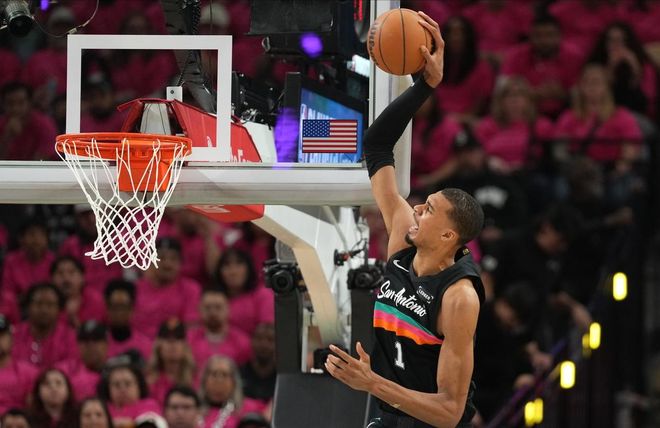作为呼声颇高的MVP候选人,文班亚马虽然是首次征战季后赛,却在这场比赛中充分展示了何为“瞎眼可见的天赋”。前辈“石佛”邓肯和“上将”大卫-罗宾逊等传奇名宿亲临现场,并没有让文班亚马怯场,反而迸发出了更强大的战斗力。面对克林根和罗威这对内线组合的轮番消耗,文班亚马巧妙化解了开拓者对自己的针对性防守,凭借后卫的速度、锋线的敏捷、内线的身高,文班内外结合做得非常棒,他在油漆区的统治力毋庸置疑,篮下11次出手命中7球,与此同时,文班亚马的外线投射简直有如神助,三分线外他交出了6投5中的成绩单,如此表现对手根本没有办法加以限制。