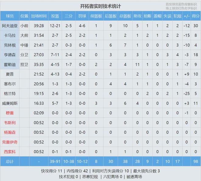 阿夫迪亚13中7拿到19+4+2,罗威替补出战6中4砍下9分5篮板。克林根被打爆了,上半场4中1仅得2分3篮板。下半场开始,亨德森和霍勒迪三分连中,开拓者一波8-0迫近到2分。马刺没有慌乱,卡斯尔空接暴扣,尚帕尼三分开张。
