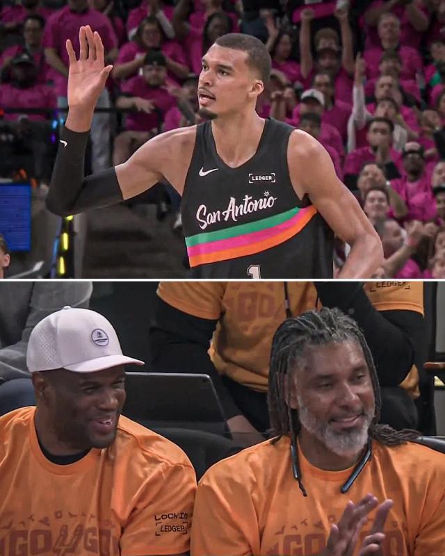 与此同时,乔治·格文、大卫·罗宾逊、邓肯、吉诺比利等一众名宿也来到现场,他们同样身着加油T恤,见证球队重返季后赛的首战。