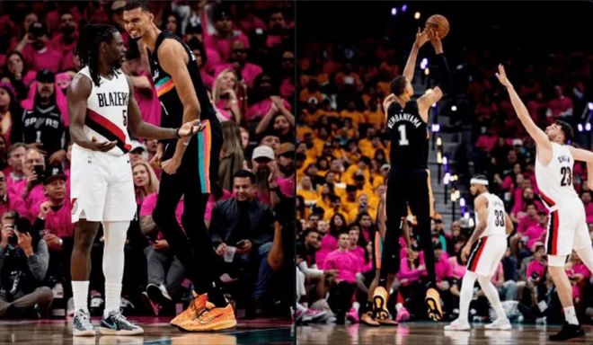 第四节决战,哈珀反击上篮加速打进,文班两人夹击下打成2+1,全场观众高呼MVP,马刺领先到21分打停开拓者。比赛失去悬念,最终,马刺111-98完胜开拓者,大比分1-0领先。