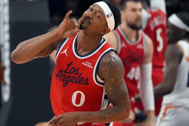 而快船队篮球运营总裁劳伦斯·弗兰克在赛季结束后的总结新闻发布会上表示,布拉德利·比尔每天都会苦练3-4小时,他下定决心要以更高的竞技水平回归赛场。几乎就在同一时间,快船随队记者Law Murray透露,布拉德利·比尔将在今年休赛期执行价值562万美元的球员选项。这么一来,下赛季的快船依旧可以看到比尔的身影。不可否认的是,NBA历史上有很多球员在换队之后,生涯开始走下坡路,现在来看比尔也是如此。奇才时期比尔称得上绝对核心,连续两个赛季场均得分30+。而在2023年,离开奇才去到太阳队后,比尔的表现确实是实打实下滑了。
