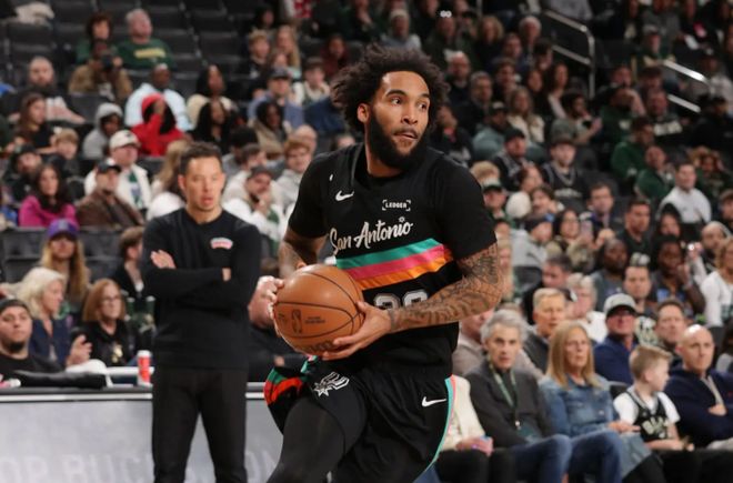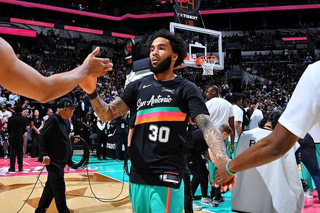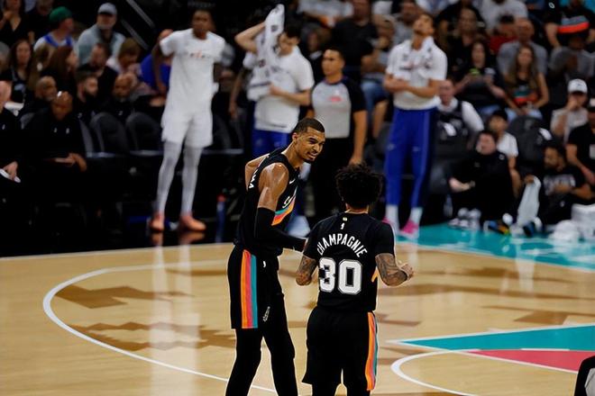 本场比赛中,马刺的先发锋线大将朱利安-尚帕尼(Julian Champagnie)的表现还是相当不错的。尚帕尼全场出场29分58秒,投篮3中2,三分线外3中2,得到了6分5篮板2助攻3抢断1盖帽的数据,还有1次失误和2次犯规,正负值为+13。尚帕尼在进攻端没有得到太多的出手机会,但是他还是抓住了有限的机会证明了自己在外线投篮方面的实力,而且他也展现出了一定的传球能力和策应能力。尚帕尼不仅在进攻端有所表现,他在防守端同样是起到了很好的效果的,他也是将自己在防守端的才能充分发挥了出来。尚帕尼在本场比赛中又一次很好地扮演了优秀3D锋线的角色,在攻防两端都起到了不小的作用,他也是为球队的这场胜利做出了自己的贡献。