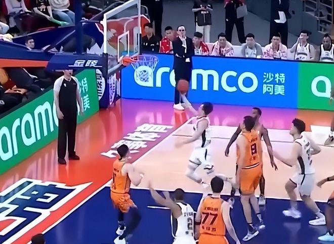 第二节初段,场上突发争议判罚:赵继伟借助队友掩护突入禁区上篮,球击筐弹出后双方争抢篮板致球出界,当值裁判果断将球权判予上海队。