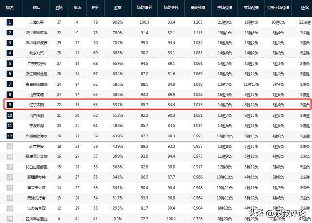 此役过后,辽宁男篮的战绩为22胜19负,排在积分榜第九位,与第八的山东已经拉开差距,下一场比赛胜负已经失去了预期的悬念。