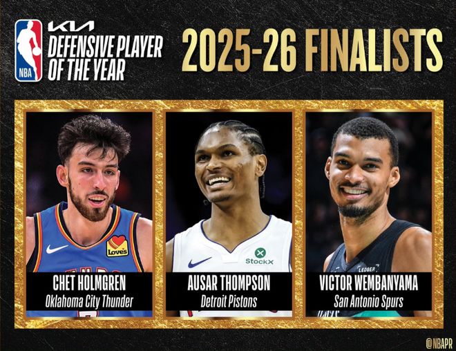 其三,文班亚马完成盖帽王3连庄与收获最佳防守球员,比肩穆托姆博、坎比成为历史第三人。