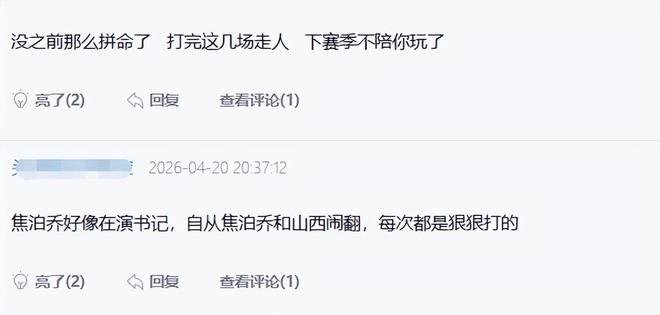 就昨晚焦泊乔这样出工不出力的表现,绝对是该骂的,别管是不是刚刚复出状态不佳,别管以前在杜锋手底下遭受了多少委屈,也别管休赛期是否真的要离队,作为一个职业球员,既然选择了回归比赛,上了场就该拿出该有的竞技状态,把比赛打好,用行动去打脸杜锋,而不是用摆烂去报复杜锋。