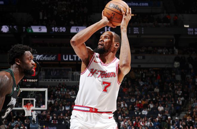 缺少这位核心球星的火箭进攻全面受限。距离受伤到第二场开打,杜兰特将休养满六天。首场比赛中,火箭整体投篮命中率仅37.6%,虽然总出手数比湖人多出27次,最终仍以9分之差落败。