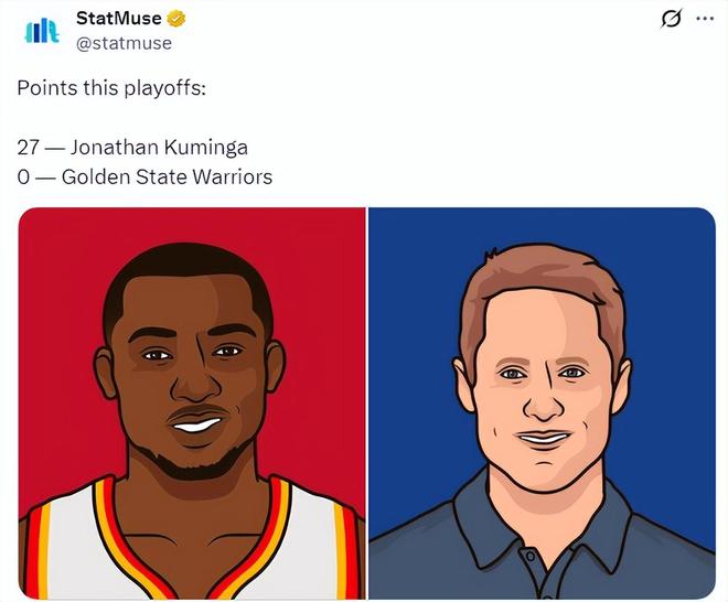 美媒StatMuse特意发推调侃:“今年季后赛库明加已经得到27分,勇士0分。”季后赛库明加的发挥越出色,相信勇士管理层和教练组就越扎心。