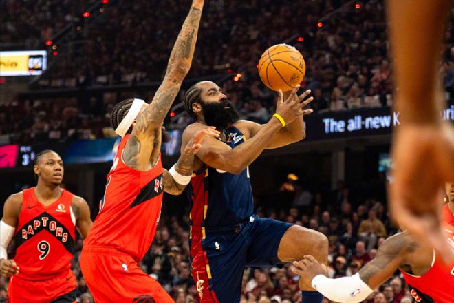 效果也的确不错,成功锁死骑士队一众替补球员,但依旧无法限制哈登与米切尔,两人在进攻端仍然是游刃有余,可谓是猛龙队防守端给什么两人就拿什么。