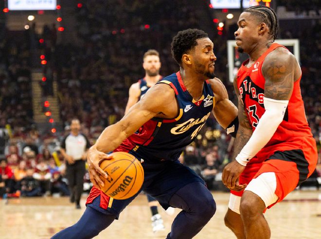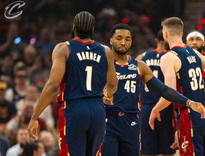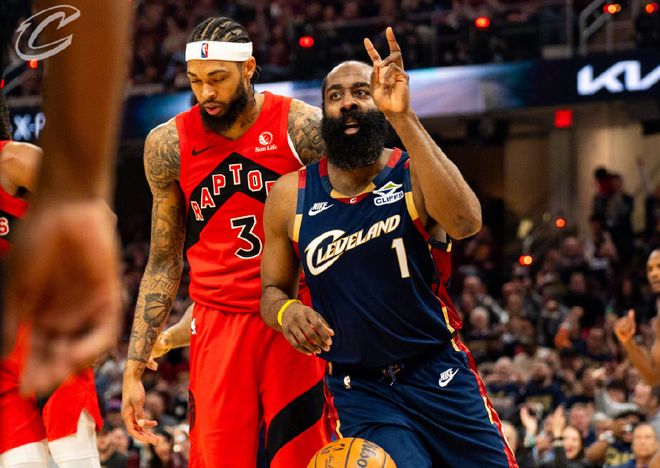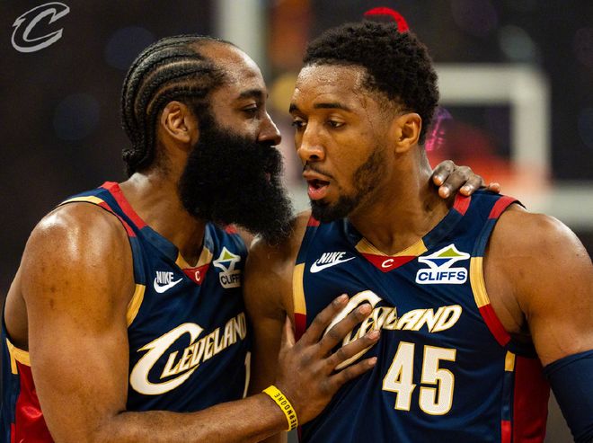 猛龙数据,巴恩斯26分4篮板5助攻,英格拉姆15中3拿到7分5失误,巴雷特22分9篮板5助攻,博伊尔斯17分7篮板,拉什维利12分9篮板,沃尔特14分。骑士数据,哈登28分5篮板4助攻5抢断,米切尔30分7篮板5助攻,莫布里25分8篮板,阿伦10分3篮板3盖帽。两队合起来打了一场比较难看的比赛。首先骑士这边,首发五人组同时在场确实没问题,哈登自己的投射效率极高,三分线内弹无虚发,莫布里和阿伦吃饼效率也很高,还有一个攻坚属性明显的米切尔,猛龙招架不住。
