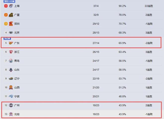 敲定季后赛对位图!辽粤进死亡之组!最后一轮决定6队命运
