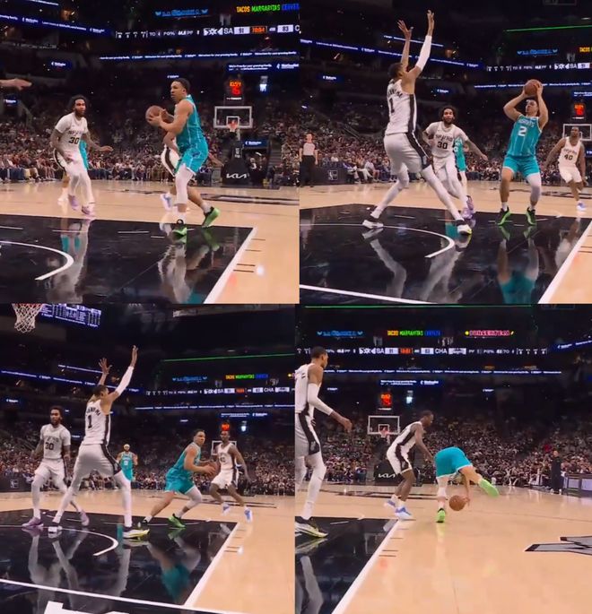 文班亚马这个回合里一个防守数据都没有拿到,但真真实实改变了比赛,本赛季马刺有太多这样的画面,这也是文班亚马能够全票当选DPOY的重要原因。