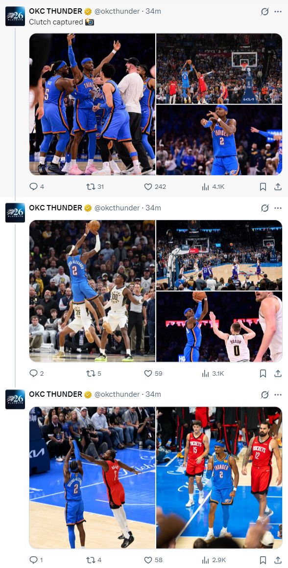 雷霆官方晒出了亚历山大本赛季常规赛多次关键时刻的瞬间,SGA在常规赛的确是杀神一般的存在,撇开SGA最大的争议(一分球),他就是如今这个联盟最强的攻防双向大心脏超巨。