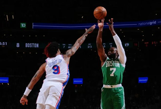 赛前纳斯确认恩比德无法出战,因为他还没恢复篮球活动,首轮基本就打不了了。赛前美媒给出一组数据,塔图姆生涯季后赛三分球命中数已经到293记,排名历史第十一,NBA历史排名第七的吉诺比利是324记,历史第十的是JR的294记,如果绿军本赛季保底东决的话,28岁的塔图姆有望三分球命中数超越吉诺比利!看起来本场比赛悬念不大,但过程属实意外!回顾下比赛,开场塔图姆就命中三分球追平JR史密斯,豪泽和布朗内外开花,布朗劈扣后过度庆祝也吃到技犯!泡椒连续跳投,联合埃奇库姆反超比分。