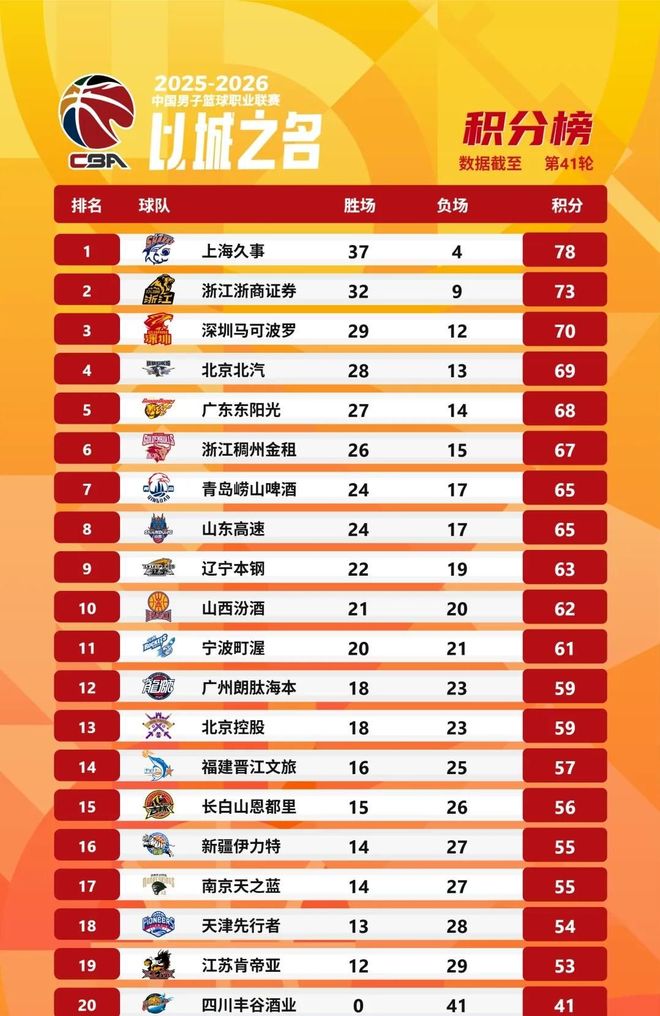 中国篮球数据库CBA 联赛:《2025-2026赛季CBA联赛常规赛第41轮综述》2026年4月21日