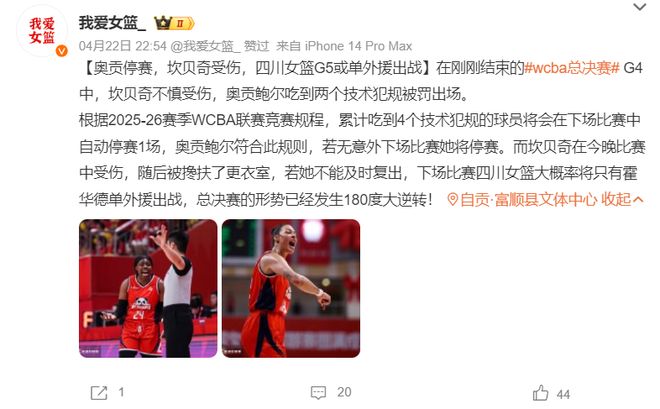 根据我爱女篮的报道,奥贡G5有可能会禁赛,坎贝奇受伤,四川女篮抢五或只有单外援出战。四川女篮只剩下霍华德这个能力最差的外援,那么总决赛的形势已经发生了180度的大逆转。