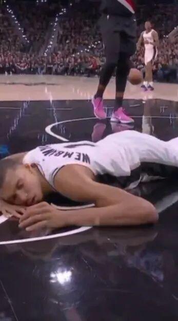 文班趴在地上缓了好久,自己踉跄着走回更衣室。他退场时的数据定格在5分4篮板1助攻1盖帽——打了不到12分钟。