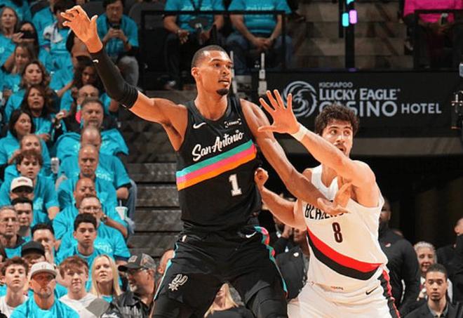 马刺在G1中凭借文班亚马历史级的季后赛首秀表现先下一城,但G2的关键在于角色球员能否延续输出。文班亚马在禁区的防守威慑力在G1中体现得淋漓尽致,开拓者球员在面对其直接防守时合计11投0中。不过,福克斯和卡斯尔在G1中合计17投仅6中的外线效率仍有提升空间,而开拓者G1中采用的克林根对位卡斯尔、卡马拉主防文班亚马的错位策略,虽然未能限制文班亚马,却成功打乱了卡斯尔的进攻节奏。G2中,马刺需要在外围投射上提供更稳定的火力支持,以缓解文班亚马在内线面临的协防压力。
