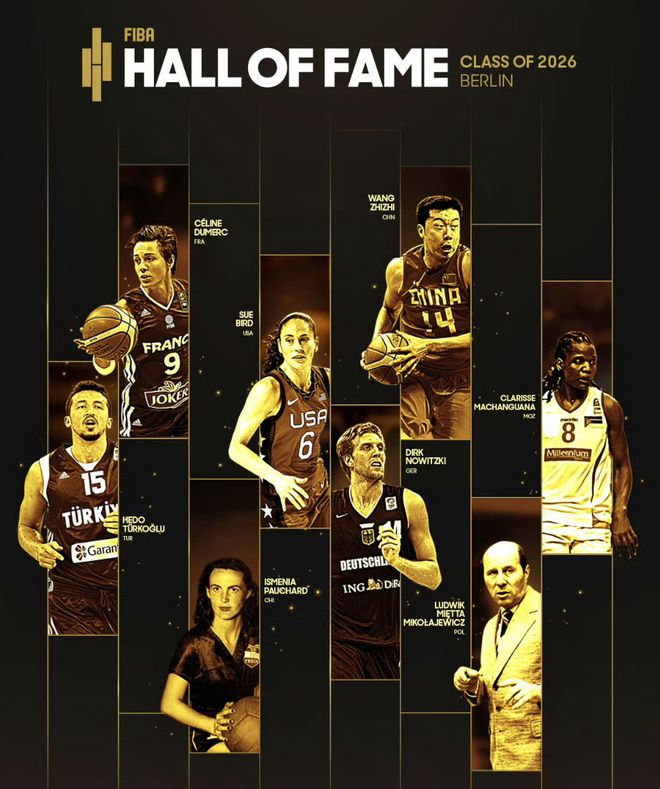 马不停蹄,王治郅接受完团队荣誉,很快又到了柏林,在 2026年FIBA篮球名人堂入堂仪式上 接受他的个人荣誉:跟诺维茨基、苏·伯德以及特科格鲁等国际篮球名宿一起入堂。