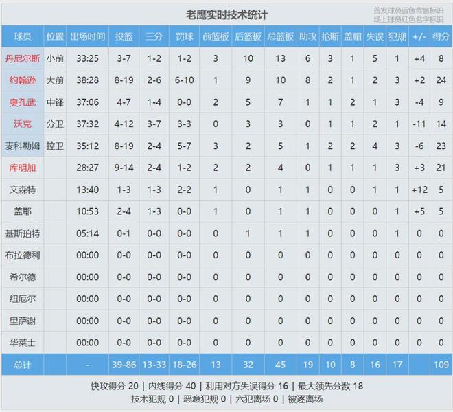 最后来看看本场数据,G4依然是老鹰的主场。这轮系列赛,你更看好谁?