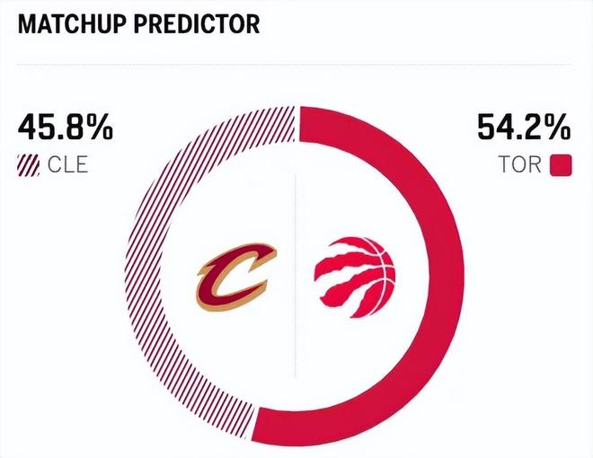 赛前,美媒ESPN对本场比赛进行了胜率预测,骑士队胜率意外降至45.8% ,猛龙胜率则突然升到54.2% ,让人捉摸不透。