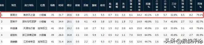 本土核心郭昊文并没有进入12人名单,但以场均20.6分3.3篮板5.5助攻的数据,成为了25-26赛季的本土得分王。