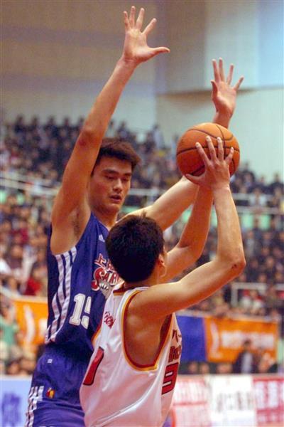 在2002年总决赛,姚明带领上海队以3比1击败八一队,获得总冠军。这也是迄今为止,上海男篮获得的唯一一次CBA总冠军。 图为2002年4月19日,上海队球员姚明(左)在比赛中防守。 新华社记者王小川摄