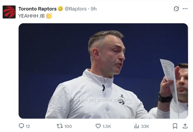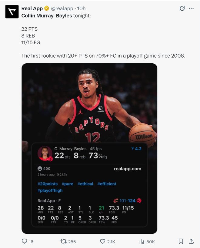 NBA记者凯文-奥康纳写道:博伊尔斯的表现已经非常出色了,猛龙真的捡到宝了。