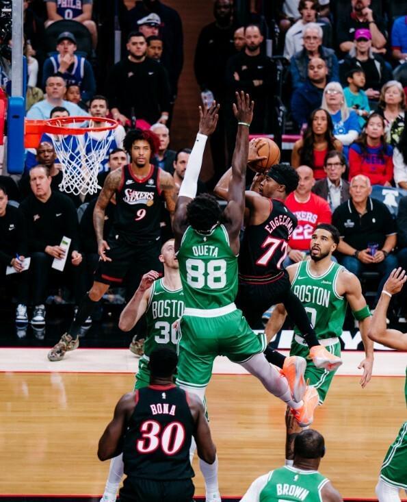 76人(1-2):马克西31分4篮板6助攻,乌布雷17分6篮板,乔治18分5助攻,埃奇库姆10分10篮板5助攻,博纳10分5篮板,德拉蒙德12分6篮板。