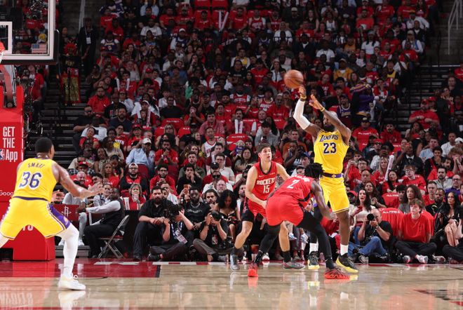进入加时赛比拼,詹姆斯继续帮助湖人压制火箭维持微弱领先优势,詹姆斯继续助攻队友得分,斯马特也是接连关键罚球得分扩大优势,从而帮助湖人最终客场加时险胜火箭,成功连赢3场季后赛总分3-0领先夺得赛点。