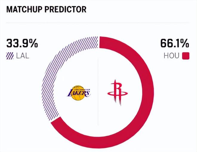 赛前,美媒ESPN对本场比赛进行了胜率预测,湖人胜率意外降至33.9% ,火箭队胜率反而升到66.1% ,让人捉摸不透。