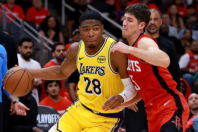 本场比赛中,湖人的先发锋线大将八村塁(Rui Hachimura)的表现还是值得肯定的,但是他的状态在比赛中也是出现了明显的起伏和波动。八村塁全场出场43分38秒,投篮14中8,三分线外7中4,罚球4中2,拿下了22分4篮板2助攻1抢断的数据,还有1次失误和5次犯规,正负值为0。八村塁在比赛第一节投篮6中6,三分线外3中3,罚球2中1,以运动战100%的命中率拿下了16分,但是在接下来的三节以及加时赛中,他的进攻效率仅为8中2,并且只得到了6分。八村塁在后三节和加时赛中不仅没有得到足够的球权和出手次数作为支持,而且也没有办法得到更多的分数。湖人在下半场比赛中在进攻端其实是出现了不小的问题的,两节比赛加起来只得到了38分,导致了火箭成功追回了分差。如果他们能够激发出八村塁的潜能 情况也可能会发生巨大的变化,湖人可能也会赢得更加轻松。