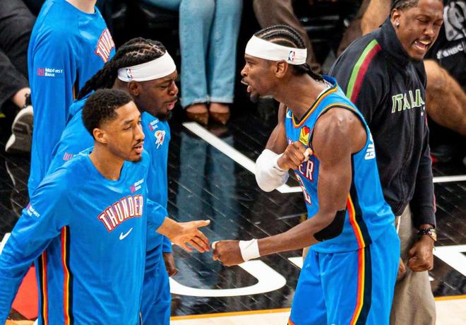 NBA季后赛首轮G3全部打完,并结束了两组G4较量,三队抢先一步拿到赛点,分别是湖人、雷霆和森林狼。具体的大比分形势为,西部:雷霆3-0太阳,马刺2-1开拓者,掘金1-3森林狼,湖人3-0马刺。东部:活塞1-2魔术,凯尔特人2-1费城76人,尼克斯2-2老鹰,骑士2-1猛龙。首先恭喜一下雷霆和湖人,3-0拿到赛点距离晋级只有一步之遥,NBA历史上从来没有出现过季后赛0-3落后情况下的翻盘,所以湖人雷霆算是稳进季后赛了。雷霆和太阳的G3,场上局势仍旧是一边倒,亚历山大证明自我,18投15中狂砍42分4篮板8助攻。