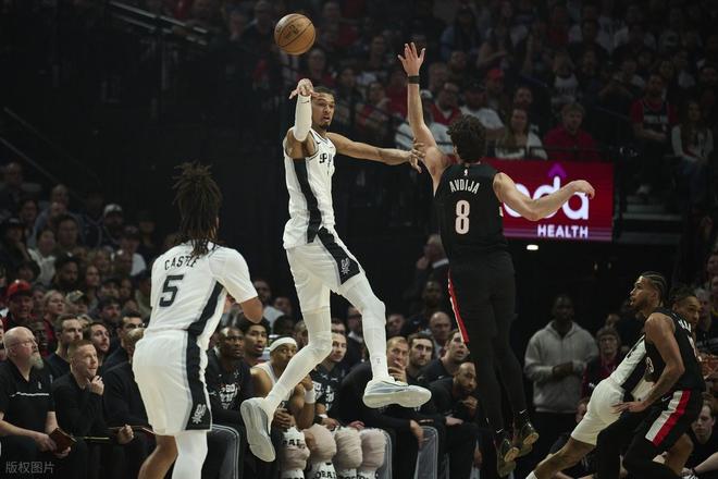 上半场比赛,开拓者这边准星十足,加上文班亚马复出急于立功,进攻端数次持球瞎打,霍勒迪在防守端确实让文班很不舒服,加上科内特次节在场时,内线的补篮和上篮连续丢了几个,也影响很大!阿夫迪亚、格兰特、霍勒迪上半场都打得很出色,阿夫迪亚13分5板3助、格兰特11分2板1助、霍勒迪9分5板3助!下半场,马刺调整打法,后卫掌控球权,持球发起进攻,文班在防守端制霸篮,站在内线把开拓者盖懵了,这个时候,卡斯尔、尚帕尼、福克斯、瓦塞尔各进一个三分,文班空接扣篮那4分,马刺彻底起势了!开拓者稳定得分点太少,阿夫迪亚下半场体能不足,突破被文班限制,霍勒迪孤掌难鸣。