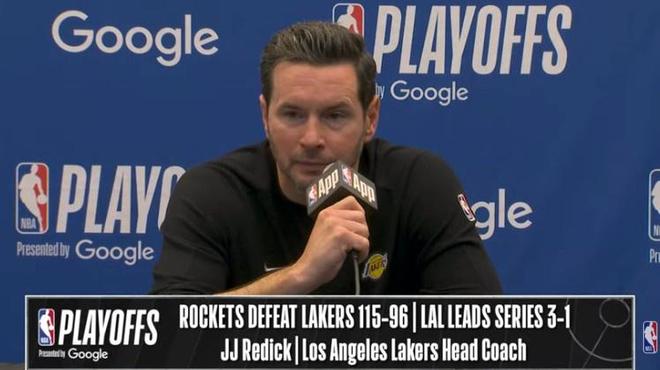 NBA季后赛首轮G4,湖人96-115不敌火箭,系列赛大比分来到3-1。赛后采访雷德克先是不满失误:接下来会重点研究,尽量减少失误。这里的核心其实就两个点,一个是詹姆斯,还有一个是斯玛特,他们两个送出了12个失误,这还是因为火箭进行了重点盯防,导致湖人在进攻端失误了太多送分的情况。