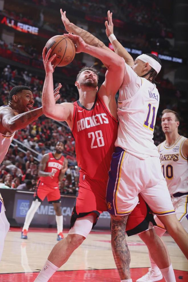 火箭延续了上一场的首发:谢泼德、阿门-汤普森、塔里-伊森、小贾巴里-史密斯、阿尔佩伦-申京。湖人首发:肯纳德、斯玛特、八村塁、詹姆斯、艾顿。系列赛前三场,火箭投篮命中率39.6%联盟垫底,三分命中率28.7%倒数第二。